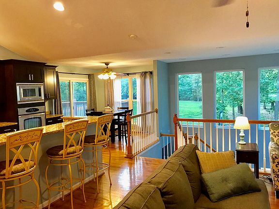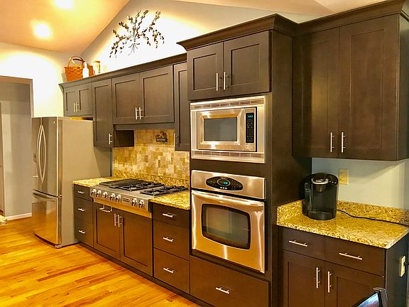 A simply lovely atrium ranch with SO MANY awesome updates: You’re welcomed in at the dedicated foyer to an amazing vaulted great room with lovely stacked stone gas-ventless fireplace complete with built-in nooks & a raised hearth & a formal dining space in addition to the beautifully updated eat-in kitchen with custom cabinets & crown, granite counters & work space abound, wonderful breakfast bar, stainless steel appliances including a 6-burner Jenn Air deluxe gas stove in alcove with ceramic tile surround, wonderful Maytag refrigerator with side-by-side doors & self-serve ice/water dispenser & pull-out deep-drawer freezer, built-in microwave & oven. Walkout too from kitchen dining to the 20x10 partially covered deck with paddle fan & extended outdoor living! Hardwood floors throughout main floor living areas, ceramic tile floors in all three bathrooms & main floor laundry. Wonderful master suite with tray ceiling & master bath boasts dual vanities, jetted tub, separate shower & private toilet plus a custom WIC & walkout to the private deck too. Also find tasteful & energy-efficient ceiling fans throughout this lovely home! Main floor bedrooms 2 & 3 are spacious with new carpet & share the semi-private full hall bath. Main floor custom laundry (including the new(er) front load washer & dryer (!!) with storage space galore including the additional alcove space between it & kitchen that boasts additional closet & kitchen pantry. Head to the beautiful wall of windows & down the lovely staircase to the predominately finished lower level complete with walkout to patio & the wonderful huge backyard & exceptional additional recreation space below. Find brand new engineered hand-scraped hardwood flooring, a built-in TV/entertainment nook, third full bath, 4th large bedroom plus an additional large sleep or office space. Find closets & great storage throughout this wonderful home as well as 400-amp electrical service, a new gas tankless hot water heater, new water softenter sysem, an oversized 2-car garage (trussed for possible bonus room over the garage!) & a wonderful semi-private acre lot. Exterior is mortarless Nova Brick with maintenance free vinyl siding, architectural shingled roof with a cedar shake look & this home has been thoughtfully & lovingly maintained & updated since its 2004 build! Look NO further… YOU ARE HOME!!