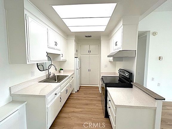 Located in Laguna Woods, Southern California’s premier 55 Plus community. A Rare opportunity for this Single Level home with its own private patio and no steps. This upgraded one bed, one bath nicely remodeled home enjoys lots of light and the serenity of No one above, below or in front of you! Located on a large corner greenbelt, the gated walled patio enjoys multi use succulent garden with pavers to use to your enjoyment, as well as a large storage closet. Redesigned with contemporary features, the Kitchen offers a skylight, a new range, vent hood, refinished countertops, new large single bowl sink, fixtures and the kitchen pantry has room for a stackable washer/dryer. Remodeled bath.The new, beautiful High-quality vinyl flooring throughout and the high 10 ft ceilings gives the feeling of a much larger unit, awaiting your personal touch to make your own. There are no steps to the covered carport with another large storage cabinet or additional guest parking just steps away. The residents have access to numerous amenities in the 55+ Community of Laguna Woods Village for Active Adults including golf, tennis, 7 clubhouses, 5 swimming pools, an equestrian center, gardening opportunities, in addition to the numerous clubs and organizations.