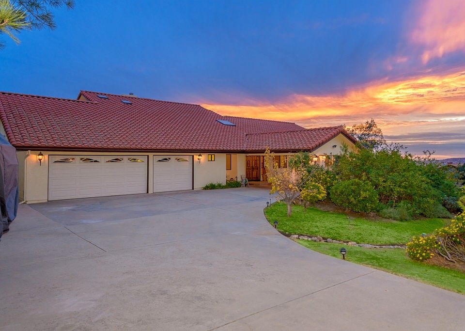 Located on a secluded Alpine hilltop with outstanding panoramic views!Mediterranean-style home with a variety of desirable features throughout.Unique, spacious floor plan and great natural light.Gourmet kitchen with large center island, tons of counter and cabinet space and a walk-in pantry.Master suite complete with modern fireplace, spa-like bath and access to the wrap-around deck with stunning views.Large windows in each room provides an abundance of natural light.Large backyard offering a country-like feel with an orchard full of over 40 kinds of fruit and nut trees. Two convenient storage sheds.Close to the I-8 freeway and downtown Alpine with a variety of shopping and dining options.