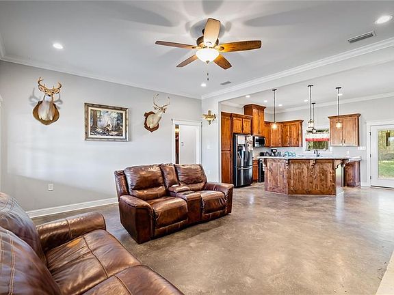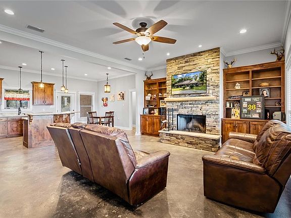 Comfortable, country living! This beautiful, custom 3-bedroom, 2 full bath, 1 half bath home is situated on approximately 28 acres! It boasts an open floor plan, stained concrete flooring, wood burning fireplace, separate office space, covered porches, fenced backyard, pole barn, split floor plan design with a Jack-and-Jill bath connecting the two spare bedrooms and his and her closets in the spacious master suite! This home has so much to offer...call today to schedule your private showing. ***Listing Agent makes no representation to accuracy of sq. ft. Buyer to verify. Any and all updates are per Seller(s).***