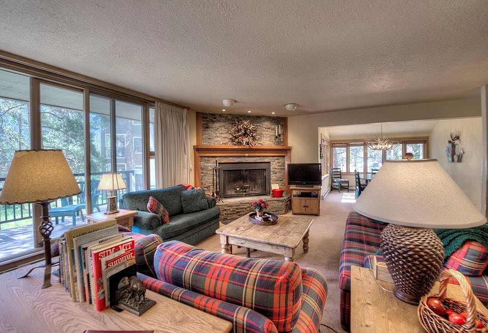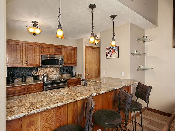 Spacious and livable 2-bedroom plus loft floor plan with vaulted ceilings. Large loft for third sleeping area. Wonderfully remodeled interior with hickory flooring, slab granite counters, stainless appliances, and dry bar with mini fridge. GE Profile appliances. Slate entry and kitchen flooring. Very nicely furnished. Large covered deck with southeast exposure. Tall windows and plentiful sunlight. Best indoor pool in all of Keystone. Shuttle bus to ski slopes. Pet friendly for owners only.