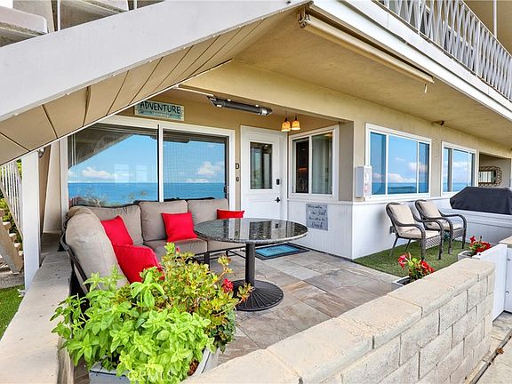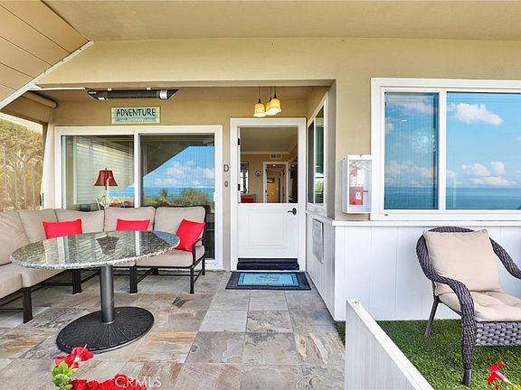 Enjoy breathtaking panoramic whitewater views from this beautifully updated 2BD/1BA single-level end-unit in a premier South Laguna Beach community. Light-filled and move-in ready, this ground-floor condo features a private enclosed patio with Dutch door, infrared heater, retractable awning, and sliding glass doors—ideal for indoor-outdoor living. Gourmet kitchen with granite counters and high-end appliances: Sub-Zero fridge, Thermador cooktop, Dacor oven/microwave/warmer, Bosch dishwasher, and wine fridge. Beveled-glass windows throughout. Primary bedroom features a solid wood wardrobe and dual closets. In-unit washer/dryer. Private 1-car garage with storage. Community heated ocean-view pool and clubhouse. Low $22/mo. land lease. Short walk to Montage Resort, Treasure Island, Aliso Beach, and top dining. Watch sunsets, whales, and dolphins from your own home—don’t miss this incredible opportunity!