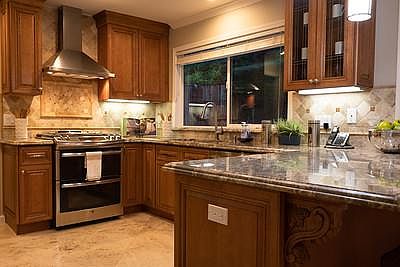 - Kitchen: Countertop - Granite, Hood Over Range, Cooktop - Gas
