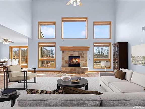 Lovely modified 2 story on a 2 acre lot. Enjoy the wide open space & beautiful western views & sunsets. Dramatic 2 story great room, new carpet & paint. Main floor living with Primary Suite, jetted tub, ceramic floor, walk in closet, gas fireplace, 6 panel doors, 6 bedrooms, 4 baths, Walk out lower level to large backyard with above ground pool with a newer back deck.