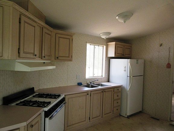 Fixer, Two bedroom 2 bath single wide manufactured home on 5 fenced acres. Master bathroom has large tub/shower with hand rails. Newer, upgraded duel pane windows and kitchen lighting. The home is serviced by metered water, but also has a well that is not metered and a spring near the south east corner of the property. Spacious, detached garage, front porch with south views.