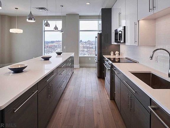 Ascend to a lifestyle unlike any other and discover a distinctive State College experience. Gaze across breathtaking panoramic views, take in spectacular sunsets and unwind under evening stars. Within this two-bedroom, two-bath corner condo, thoughtful interiors unfold walls of windows, rich selections, 10-foot ceilings and luxurious living spaces. At the center of this open floor plan, a stylish European-style kitchen is dressed in Quartz countertops, Bosch SS appliances, custom soft-close cabinets and shimmering pendant lights. Handsome engineered white oak floors flow from the kitchen into generous living and dining areas ready for your embellishment. Imagine time on the 96 SF covered private terrace overlooking downtown and the beautiful PSU campus. Find rest in luxurious bedrooms with nicely outfitted baths. Other pleasing amenities include use of rooftop patio, private entrance and parking, delivery from on-site Federal Tap House and Hyatt Health Club.