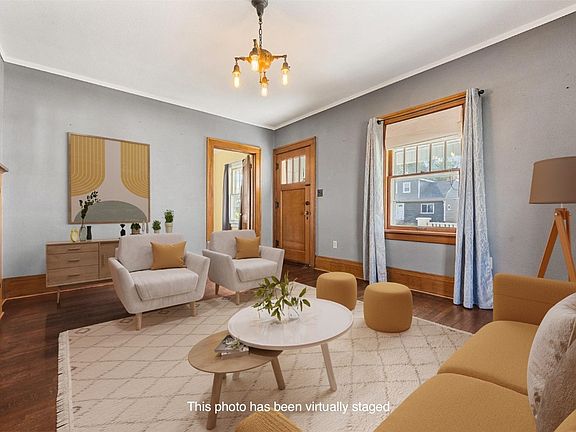 Act now and be in this home full of original charm and character by the holidays! Gorgeous oak hardwood floors throughout the main floor. The spacious living room has mission style built-in shelving with leaded glass doors and opens to the formal dining room with a window seat and built-in hutch. The adorable kitchen features white cabinetry, a breakfast nook and all stainless appliances stay with the home. The main floor also offers 2 large bedrooms and additional storage in the hallway just off the recently renovated full bath. Upstairs you will find more hardwood floors and a huge loft/rec room area, a very spacious bedroom, a second full bath and a “bonus” room that could be used as an office, toy room, sewing room - whatever you choose! The lower level is unfinished and perfect for all of your storage needs. Large open front porch with porch swing, detached garage and fenced-in backyard.