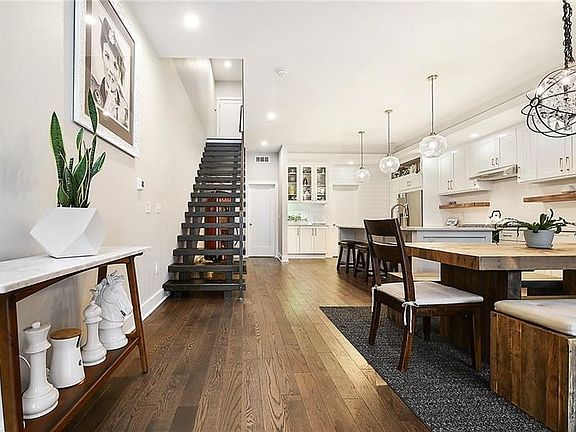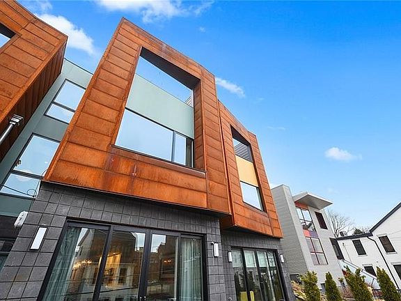 Stunning modern build w/Corten steel facade, private third floor deck w/skyline views, all a few steps from Butler St's main attractions. Inside you enter an open 1st floor w/soaring trayed ceilings. Hardwood floors underfoot lead to the large living room where you can exit to your private front courtyard--the owners installed pet-friendly turf & glass railings. The open staircase has a three story atrium at the front ushering in outstanding natural light. The high-end kitchen has a massive island; white, Shaker-style cabinetry; stainless appliances; solid core counter tops; brass accents & a huge pantry. Modern finishes grace the powder room & dining room. The rear, attached 2 car garage leads to a long gallery hall on the 2nd floor & your master wing w/oversized windows, large walk-in-closet & modern, sleek master bath w/separate tub & lusty shower, double vanities & brass accents. The 3rd floor has 2 guest bedrooms, a laundry room & the piece de resistance, the 3rd floor deck.