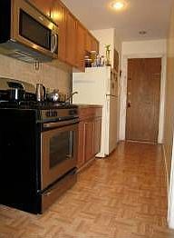 Lrg Sunny corner unit with great renovated kitchen and bathroom, recessed lighting in the kitchen. Five blocks to rail @ 48th St. Very close to transp