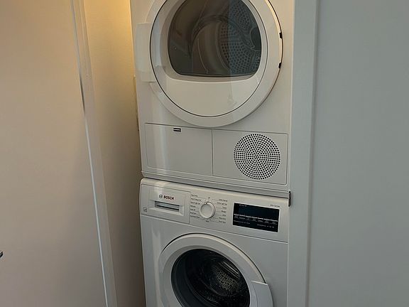 758 SQ FT STUDIO/HO - GORGEOUS SOUTH FACING CONVERTED ONE BED Great opportunity to rent at the sought after Powerhouse condos. Apt. 511 feels like a spacious loft. This 758 sq. ft. south facing unit features top of the line appliances including Viking and Jenn Air, Bosch w/d, microwave and gorgeous walnut floors. The home office has been converted into the perfect one bedroom . Updated with modern sliding doors, this space can fit a king size bed, dresser and has two large closets. The following amazing amenities: are included in the rent: top notch gym,, lounge area with pool table, business center, children's room, bicycle room, cold storage, huge roof deck with BBQ grills and lounge furniture to enjoy the sprawling views of Manhattan. The Powerhouse has a live in resident manager for your convenience. Awesome location... 2 blocks to the 7 train, 2 blocks to the ferry, and one block to Vernon Boulevard home of restaurants, cafes, wine bars and gourmet supermarkets. (virtually staged)
