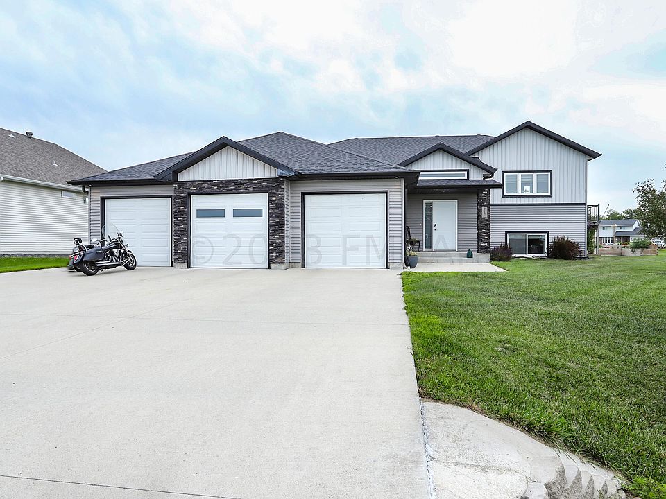 Get ready to fall in love with this unique split level 4 bedroom 3 bathroom with lots of extras. Big entryway with built in drop zone and bench. Head upstairs to an open floorplan with recessed lighting and 9ft ceilings. Big Kitchen with pantry, and undercabinet lighting. Down the hall you will find a laundry room, bathroom, bedroom, owners suite with bathroom and walk in closet. The lower level boasts in floor heat through out for those cold winter nights, wet bar, with new refrigerator, a feature wood wall, second laundry hookups in utility room, a bathroom, 2 more bedrooms and nice storage room. lots of room in this triple stall garage with heated floors and a floor drain. Head out back and enjoy time on your maintenance free deck or brick patio.