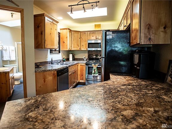 Rare opportunity to own a condo in downtown Leavenworth. Top floor with covered balcony. Updated in 2016 including new A/C unit, refrigerator, stove/oven, microwave, dishwasher, kitchen cabinets, counter tops, & flooring, bathroom cabinet & flooring, & carpet & paint throughout. Unit comes fully furnished and can sleep 4-6 comfortably. HOA just approved getting insurance to allow use of condos as nightly rentals.