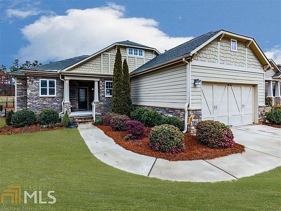 NEW HARDWOOD FLOORS and GRANITE COUNTERS by Mid-May! MODEL HOME, LOADED w/UPGRADES FROM FOUNDATION TO CROWN MOLDING! Soliel Laurel Canyon has been ranked #3 in Active Adult 55 + communities by Atlanta Business Chronicle. This impeccable golf course home features a perfect view of the 11th hole from the screened porch & dry-below patio. Large master suite with luxury spa-like bath and custom closets. This former model home includes a custom built-in desk, multiple built-in cabinets in 3rd bedroom. The kitchen provides plenty of room for food prep, cooking & meal time. Room to expand in full basement. NEW Paint! HOA includes gated w/security, yard maintenance, social activities, walking trails, fitness center, billiards, cooking classes + SENIOR TAX EXEMPT!
