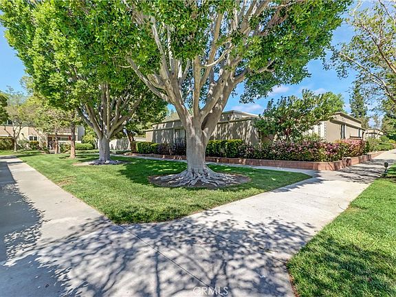 Welcome home to this remodeled 2BD/1BA "Barcelona" co-op located up on the hill with beautiful tree-filled surroundings. This great floorplan is an end unit with just 2 shared walls and no one above or below. Peaceful location with a lovely walk-up from the carport and large sloping greenbelt in front. South facing for nice light throughout the day! Front patio features custom retractable shades will be appreciated on our hot summer days and easy to retract to let the sun in when desired, large storage cabinet and double door entry. The enlarged kitchen has been remodeled with a more traditional elegance including warm wood cabinets, stone counters, tile flooring, stainless appliances and recessed lights. A portion of the wall has been opened up for more accessibility to the living room space. You'll love the smooth ceilings and crown molding throughout this home. Interior atrium enjoys matching retractable shades and provides another patio space plus light and fresh air to the center of the home. Guest bedroom and hallway both feature windows out the the atrium. Your guest bedroom contains a generous amount of storage space. Large sized bathroom in between the 2 bedrooms is updated with tall, stone-topped vanities in matching wood tones, updated faucets, fixtures and tile flooring. Tub/shower combo is original and maintained by the HOA. The primary bedroom houses the stack washer/dryer in its own closet, french doors leading out the front patio and south facing window for a sunny outlook. Laguna Woods Village residents are privileged to enjoy a 27-hole championship golf course, a 9-hole executive par 3 course, pickleball and tennis courts, lawn bowling, gyms, clubhouses, swimming pools, horse stables, gardening centers, an art studio, computer workrooms and classes + over 200 clubs and organizations!