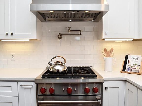 - Kit Dscrp: Flooring - Hardwood, Countertops - Stone/Granite/Solid, Kitchen Island, Stainless Steel Appliances, Pot Filler Faucet, Gas Stove