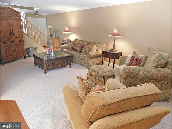 You can move right into this spotless, impeccably maintained and upgraded townhome located on a quiet cul-de-sac street, yet so convenient to shopping and commuting. Walk past the maintenance free front beds edged in cobblestone and you're greeted by the charming front porch. Enter through a full-view storm door and insulated front door to the foyer with hardwood floor and convenient coat closet. To the right is the family room/study with a decorative brick front fireplace and large walk-in closet with organizer. Double doors lead to the kitchen with hardwood floors, expanded cabinets, loads of solid surface countertop, breakfast bar, pantry, over the range microwave, French door refrigerator with in the door ice maker and plenty of recessed lighting. The living and dining rooms have crown molding, the dining room also features hardwood floors, chair rail and sliding glass doors to the private patio overlooking open space. A powder room with extra wide cherry vanity and hardwood floor completes the first floor. Upstairs, the large master bedroom has a walk-in closet, lighted ceiling fan and en-suite bath featuring a fully tiled shower and oversized vanity with solid surface top. Two more bedrooms each feature double windows. A hall bath with tiled tub/shower and another extra wide vanity, hall linen closet, plus a second floor laundry area with storage shelving and hanging space complete the second floor. Continue up the stairs past built-in bookshelves to the third floor loft which could be a fourth bedroom. There's a skylight (that opens) with sliding shade over a cozy nook that would make a great window seat. Recessed lights, a ceiling fan and full wall double closets complete the interior. There's also a detached garage with remote opener and convenient keypad entry. Minutes to shopping centers, malls, I-95, Rt. 1, PA & NJ turnpikes and trains to NY and Phila.