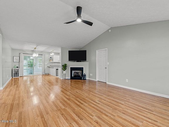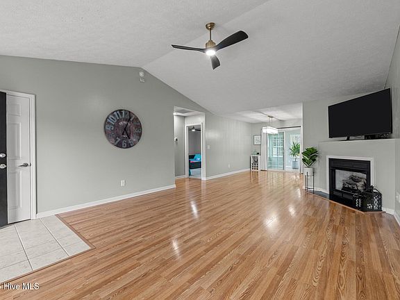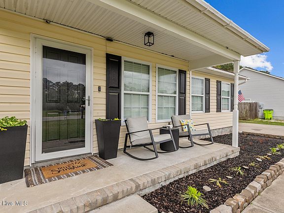 Charming move-in ready home in Indian Woods Park! This meticulously maintained 3-bedroom, 2-bathroom residence offers a perfect blend of comfort and style. Updated fixtures throughout the home give a modern and upscale feel. You'll love the open and inviting layout complemented by vaulted ceilings, creating a spacious living area while the gas fireplace in the corner provides a cozy ambiance. The living area flows into the dining area and kitchen. The kitchen boasts ample counter space and a generous pantry closet. Adjacent to the dining area, a bright sunroom invites you to soak up the sun year-round—an ideal spot for your morning coffee or evening wind-down. Retreat to the primary bedroom, which features a walk-in closet with built-in shelving and a private en-suite bathroom for your convenience. The thoughtfully designed split floor plan places two additional bedrooms on the opposite side of the home, offering privacy and comfort, along with another full bathroom. Step outside to discover a spacious backyard, complete with a large deck perfect for summer barbecues and outdoor gatherings. There's plenty of room for children and pets to play, plus a porch swing, creating the ideal outdoor oasis. Conveniently located between MCAS Cherry Point and downtown New Bern, this home has it all. Don't miss your chance to own this beautiful home —schedule your showing today!
