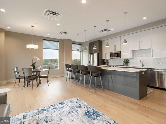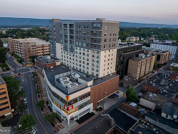 Discover a distinctive living experience in State College with this luxurious two-bedroom, two-bath condo, featuring breathtaking panoramic views, stunning sunsets, and serene evenings under the stars. Elegantly designed, it boasts an open floor plan with 10-foot ceilings, expansive windows, and engineered white oak floors. At its heart lies a stylish European-style kitchen equipped with Quartz countertops, Bosch stainless steel appliances, and custom cabinets, opening to generous living and dining areas. Step out onto the covered private terrace for views of downtown and the Penn State University campus, and enjoy additional amenities like a rooftop patio, private entrance, reserved parking, and access to the Hyatt Health Club.