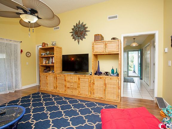 Absolutely gorgeous 3 Bedroom, 2 Bath home with a 2-car detached garage. 8 x 13' Sunroom/Carolina Room. Kitchen features beautiful granite countertops, stainless steel appliances and plenty of cabinet space. Eat in dining area. Updated baths and Pergo flooring. Master Suite is on the rear of the home. Private courtyard perfect for entertaining and grilling. Roof installed 2022, HVAC 2021. Low HOA includes basic cable, internet and trash. All windows are double paned. See this one today, close to shopping, dining, beaches, golf and only a 6.5-mile drive to the ocean.