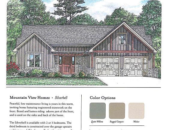 Peaceful, low maintenance living is yours in this warm, inviting home featuring engineered stonework on the front. Board & batten siding adorns part of the front and is used on the sides & back of the home. The Silverbell is available with 2 or 3 bedrooms. The third bedroom is constructed over the garage upstairs and features a full bathroom. Perfect for visitors or a live in relative!