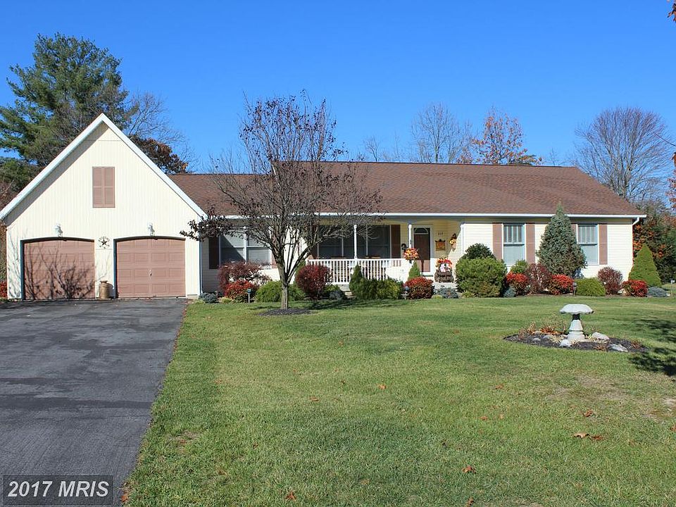Enjoy one level country living! Rancher offers formal dining/living room space. Kitchen w/ upgraded appliances and granite tops w/ eating bar area open to eating space or family room w/ pellet stove. Master bedroom w/ jetted tub and separate shower. Oversized garage w/ tons of attic storage. Covered front porch w/ landscaping. Rear deck w/ awning. 2 storage sheds w/ electric. Generator set-up.