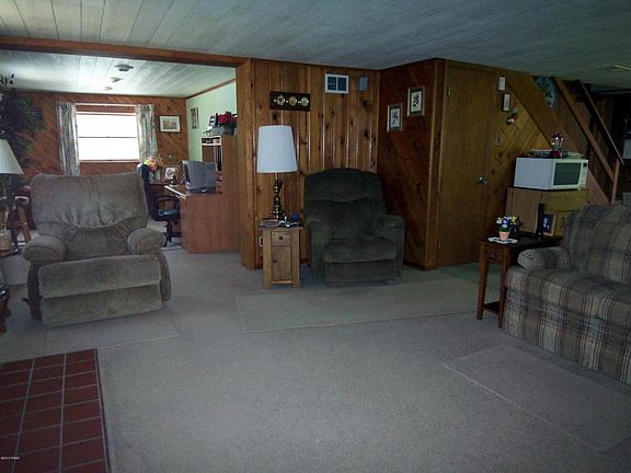 ATTENTION HUNTERS & FISHERMAN! Located a short distance from Pecks Pond boat launch and right across from 16,000+ acres of STATE FOREST, this home sits on .88 acres of level wooded lawn property. Spacious master bedroom on the main level, w/2 to 3 more bedrooms on 2nd level. Open floor plan, laundry room, office, covered porch, back deck, OVER SIZED 2 car garage, several outbuildings, very well maintained and move in ready. Great starter home or vacation home. NO COMMUNITY, NO DUES!