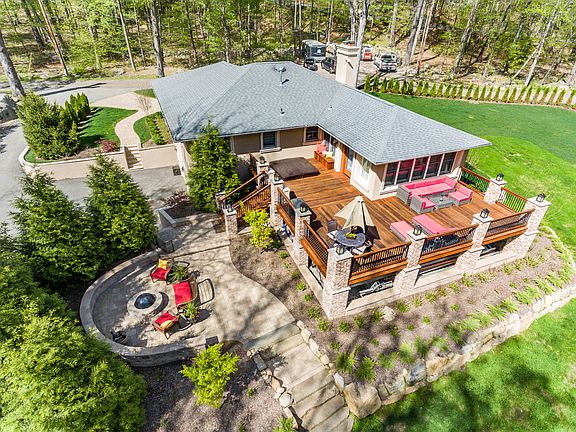 Privacy abounds this Custom 3/4BR Ranch with Open floor plan and All the Bells & Whistles. Completely Updated, this Unique home is situated on 8+ lavish Acres. The FLR boosts a lovely Stone Fireplace in addition to the cozy Ambiance of the FR FP. Delightful Kit with SS Appliances, Granite, & Custom Lighting. Elegant beauty throughout this Updated & Upgraded luxurious home. FR w/ Porecelain Tile, Radiant Heat and New Windows with Custom Remote Motorized Shades. EPAY Deck with Gorgeous Views of the Backyard of the Entertainers Dreams. , Paver Patio, Firepit, Boulder Retaining Walls, and Wooded Lot with Adjacent Lake. Finished W/O Basement has Fam Rm, Fireplace,Full BA and BR/Bonus Room. The perfect In law Suite. This luxurious Home is not to be missed!