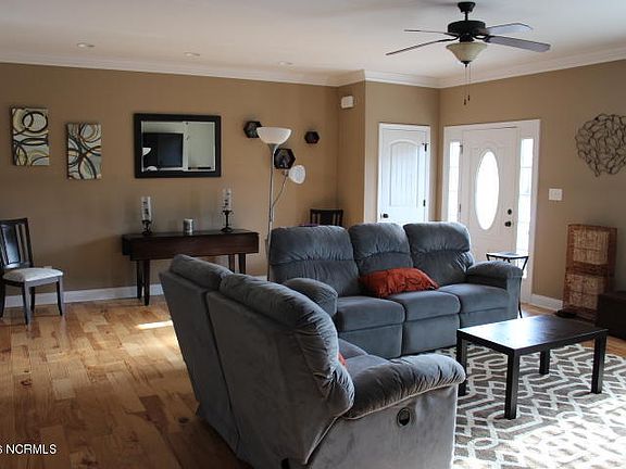 Four bedroom, two bath, single-story home located in Forestbrook subdivision. Home features a fireplace in the living room, stainless steel appliances, granite countertops in kitchen, separate laundry room. Bamboo flooring, tile and carpeting. Covered front porch, screened back deck, fenced back yard. Close to Historic Downtown Swansboro, Hammock Beach State Park, area bases, beaches, dining and more.