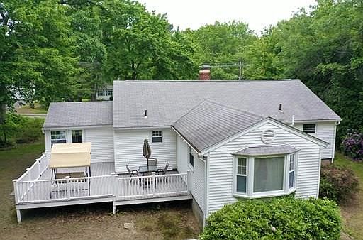 Do not wait to see this 4 bedroom ranch with 2 full baths in a perfect commuting location~~~Open floorplan with gleaming refinished hardwood floors~~~Large working kitchen with plenty of cabinets opens to the dining area~~~Sun filled living room with large windows and a fireplace~~~Original 3 bedroom floorplan, a rear addition was completed to provide a 13' x 14' main bedroom with a picture window overlooking the private rear yard~~~The three season sun room is just off the kitchen and provides access to the open deck with composite flooring~~~The finished lower level used as a family room with a woodstove also has a 10' x 12' additional area which could easily accommodate a home office or exercise space~~~Large bath with a walk in shower and laundry~~~Storage room and access to the garage finishes this level~~~ Many recent updates including windows, fresh paint, carpeting and more~~~Vinyl siding for easy care~~~Convenient to local schools~~~