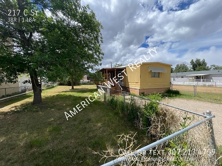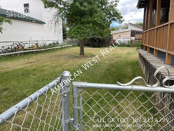 Home located on spacious lot with off-street parking, large fenced yard, and a big deck out front. Three bedrooms and 1.5 baths. One bedroom is near the living room and includes an attached bathroom with shower and toilet (no sink). The other two bedrooms are located on the opposite end with a full bath located between them. Washer / dryer hookups in the full bath with storage cabinets. Kitchen includes fridge and stove, plenty of storage. There's a small enclosed addition in back serves as a mud room or storage. Forced air heat, swamp cooler. New roof, Fridge and all new flooring! Pets Negotiable for additional charge per pet. No smoking! NOTE: Owner will eventually tear down the storage shed and use northern half of the lot for a second home. _____________________ A $50 Lease Preparation Fee is due with your Security Deposit. All residents are enrolled in the Resident Benefits Package (RBP) for $46.95/month, which includes renter's insurance, credit building, $1M Identity Theft Protection, HVAC air filter delivery, move-in concierge service, resident rewards program, andA more! Learn more at TENANT RESOURCES > APPLICATION AND RENTING POLICY. _____________________ General requirements: All occupants 18+ must apply and be approved $30 application fee per person Submit a government-issued picture ID Prove combined income of 3x monthly rent _____________________ The information presented is deemed reliable, but is not warranted. Interested parties are responsible for inspecting and confirming the accuracy, completeness, currency, and status of all information before renting. _____________________ INVESTORS: Are you looking for professional property management or a sales agent? Contact American West Realty and Management today to learn about our services! Air Conditioning Swamp Cooler Ceiling Fan Deck / Porch Fencing Partially Fenced Heat Forced Air Kitchen Pantry Kitchen Refrigerator Kitchen Stove / Oven Utility Black Hills Energy Utility City Of Cody (Water, Electric, Sewer, Trash) Washer/Dryer Hookups