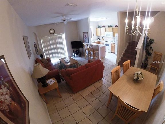Great location and floor plan. Upgraded 3 bed - 3 bath. Tiles in the living room and wet areas, Laminate floors in all the bedrooms and upstairs hallway, this home has its own utility room. Fully furnished and shows very well! An exclusive private, gated Resort community located just 15 minutes from Disney World''s Main Gate. The complex consists of 600 town house style homes in a lovely Tuscan Villa style setting with several amenities. You will be delighted with our 2 1/2 acre tropical swimming pool and lazy river oasis, complete with heated pools, water slide with waterfalls, outdoor & indoor Jacuzzis. Sun bathing terraces, a playground & a volleyball court with a pool side "tiki" bar. The fitness center has a therapeutic Jacuzzi, steam room & sauna along with elliptical equipment. The spa allows you to pamper yourself with massage, manicures and pedicures, etc.... Inside you can enjoy dining at our restaurant & bar, surf the internet on your laptop using free Wi-Fi, or utilize our business center. We offer live entertainment (seasonal), event celebrations on holidays & even a market place for the must have items! The Guest Services department is open 24 hours to meet the needs of our guests & owners. Banana Jacks, a 3000+ sq. ft. family style environment with games, food & fun for all ages.