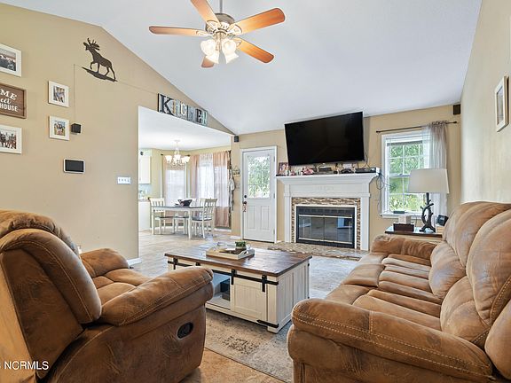 Welcome to Kanton Ridge...your new home in an inviting neighborhood with NO HOA! This 3 bedroom, 2 bath home is waiting for you. 217 Cantle Court is conveniently located just minutes from New River Air Station, the bypass, and Topsail Beaches. This house features a spacious 2 car garage, and a fenced in back yard with a deck great for enjoying fall nights. Inside features an open concept floor plan with vaulted ceilings, gorgeous title throughout, and a wood burning fireplace in the living room. Enjoy the eat in kitchen with stainless steel appliances, white cabinets, and a separate area for laundry and dining. Schedule your showing today.