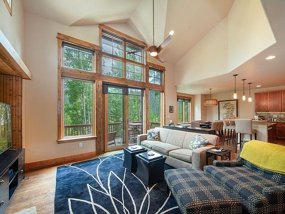 Private end unit with views of the ski slopes in Winter and an Aspen Grove in Summer. This South facing unit is 3 bed and 3.5 bath. Private salt W spa plus jetted tub in the Master suite. Large loft if needed for extra sleeping. Full 2 car garage with custom cabinets for ski gear. Owner has never rented so in Great shape. Custom Wood Blinds, Wood flooring, Granite and Stainless appliances. Washer and Dryer stays. This is the location people dream about (Private) and you are close to everything.