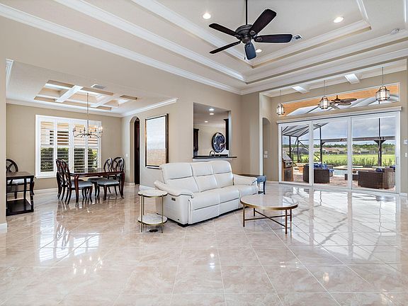 This fantastic pool home in the sought after Jupiter country club sits on the 11 hole with beautiful lake views. This single Level 3Bed/2.5 Bath with a den consists of an open floor plan and 14 foot ceilings in the great room which has wonderful natural light and a great view of the pool and golf course. Outstanding Interior & Exterior Features Include; Stunning Diagonal Porcelain Tile & Plank Wood Floors, Crown Molding, Tray Ceilings, Plantation Window Treatments & Impact Glass Throughout. The pool is salt water and there is a tankless water heater. The community includes a dine in restaurant as well as 2 pools ( Family pool and the other an adult and lap pool) as well as multiple tennis courts, large workout facility and more! This property Currently Has a Social Membership which is $5000+ Tax Initiation Fee, Monthly Dues $380.00 + Tax. One Time Capital Contribution of 3 months HOA due at Closing.