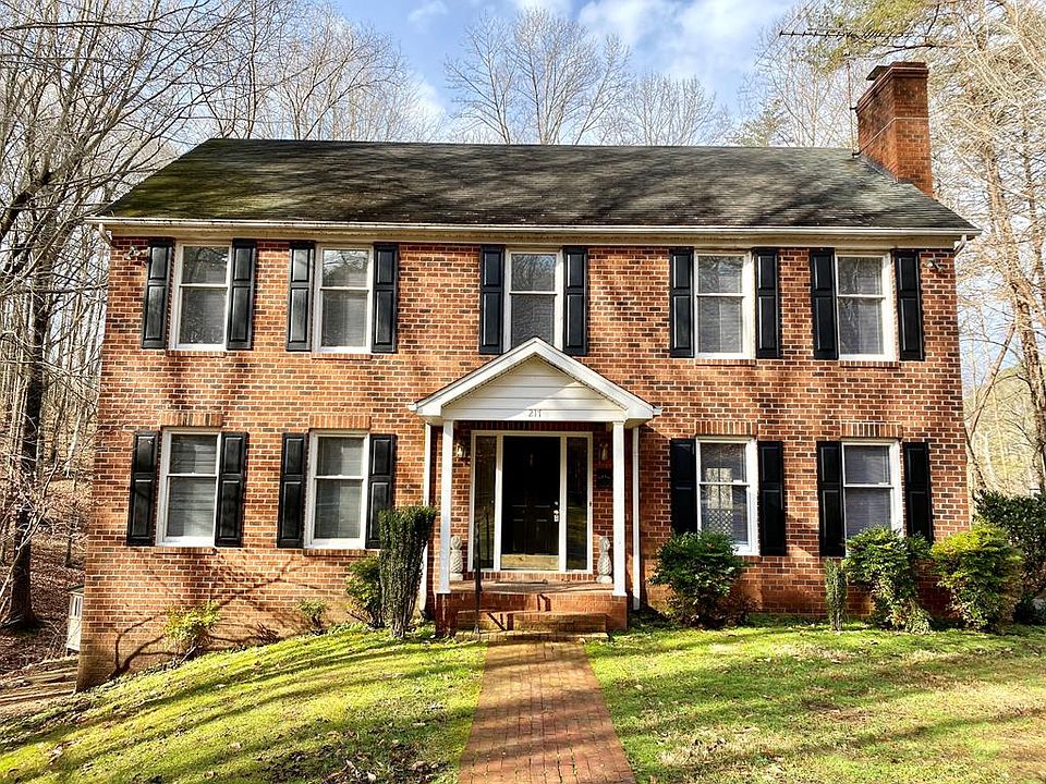 Classic 2 story brick home on 1.68 acres with Chatmoss golf course beyond the wooded backyard. Enjoy the family room with hardwood floors, gas fireplace, built-ins and French door opening onto a tranquil screen porch. Kitchen has been updated with stainless steel appliances. Spacious ensuite master bedroom has a huge walk-in closet and an impressive vaulted ceiling. Three more bedrooms on the second level each with gracious closet space. Washer and dryer are conveniently located on the 2nd level with bedrooms. Large family room in the basement along with an office or exercise room with a full bath. Home is situated in a wooded wonderland with open, level front yard and stream meandering through the property. Don't just come home.....arrive!
