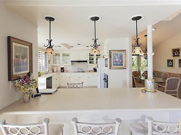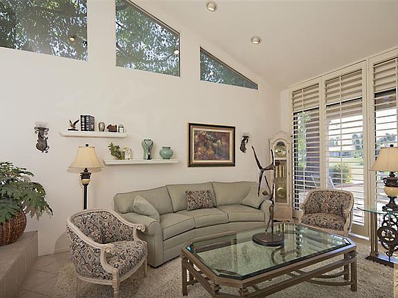 Rarely available 3000 Max Plan with beautiful private sideyard in one of Monterey Country Club's most spectacular locations. Not only does this one-of-a-kind home enjoy southern golf course, lake and mountain views, it is also the club's ONLY free standing, unattached unit! The home features two bedrooms, a huge den/office and three large baths. The den/office could easily be converted back to a third bedroom and, like the other bedrooms, has its own bath. Updates include a large extended and tiled patio, double sided fireplace, plantation shutters, ceiling fans, recessed lighting, solid surface countertops, undercabinet lighting in the kitchen and tile flooring in all traffic areas. The kitchen has also been opened to the great room and a breakfast counter has been added. The home's private sideyard can be accessed from the dining room and both bedrooms. The sideyard features lovely landscaping and your own citrus grove. A community pool and spa is directly across the street.