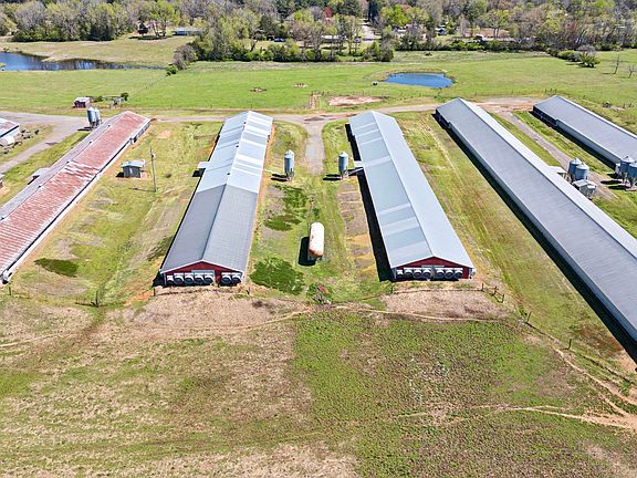 Beautiful Country Home sitting on 62 +/- acres (2 Parcels) 5 Poultry Houses that have all REQUIRED updates completed with Swimming pool and a greenhouse. A\C is 2 years old. All appliances, Refrigerator, Dishwasher, and Stove are a year old, bathrooms have been remodeled and Home is on Natural Gas. Property is fenced and cross fenced with 5 ponds, 1 water well. Little over 1/2 mile of County Road Frontage and .8 miles of Hwy 105 footage. 2 shops, 3 barns. Two 43x500, two 40x350, and 1 36x340 poultry houses, feed bins are not rusted, all cool cells are good, 2 generators (60 & 75 KW), Ecodrum. Bulk Propane tank for poultry houses, Natural Gas is available at all chicken houses. Equipment and houses all in good shape. New water lines in #1 house, all feed lines have turbo chick mates. Also has mobile home on property sold AS-IS. MINERAL RIGHTS WILL CONVEY. Agents see remarks.