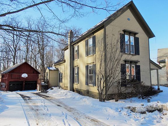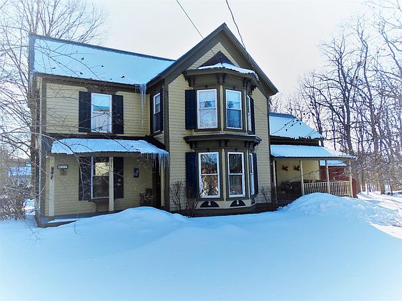 Fly Creek Victorian, 3 Bed, 2 Bath, 2 Car/2 Story Garage/Barn on Large Village Lot. This lovely home is open & spacious with eat-in kitchen/newer LG appliances, dining room, living room/Harmon pellet stove, den/office, bathroom & first floor laundry. Second floor bath with walk-in tiled shower, along with three exceptionally good sized bedrooms and beautiful wood floors. The insulated walkout basement has workshop & great storage space. Metal roofing, updated utilities and a Generac generator for those unexpected power outages! Convenient barbequing & meals on the covered side patio with durable Trex decking. This home and property has been respectfully maintained since 1885 and is located just a few steps away from the Fly Creek General Store & Post Office in Cooperstown Schools. $219,900.