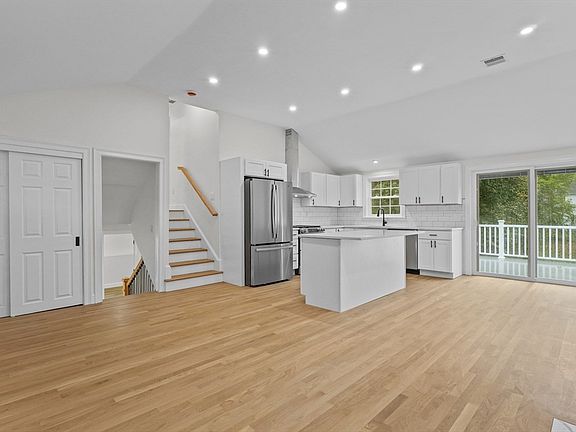 Nothing to do but move right into this absolutely gorgeous, completely remodeled, 8 room, 3/4 bedroom, 3 full bath Contemporary multilevel in great location! Everything is new! Lovely open floor plan w/cathedral ceiling w/recessed Lgts, hardwood flrs, living rm w/white stone fireplace, bright kit w/Quartz counters, stainless steel appliances, gas cooking, tile backsplash & Lg island opening to dining rm w/slider to deck! Gorgeous Primary suite w/recess Lgts, walk in closet & luxurious bath w/tiled shower w/glass door & double sinks! Versatile floor plan has 3 or 4 bdrms, family rm & office! More updates include new wood flooring, new architectural roof, new vinyl siding, new windows, new composite deck & front porch, new electrical, new plumbing, new heating, new central air, new tankless gas hot water heater, new insulation, new driveway, new landscaping & more! Wonderful level yard in great location! Walk to schools, shops & minutes to Pike & all major routes, restaurants & shopping!