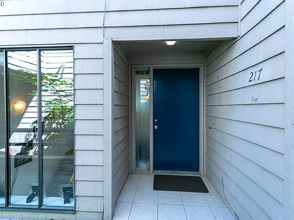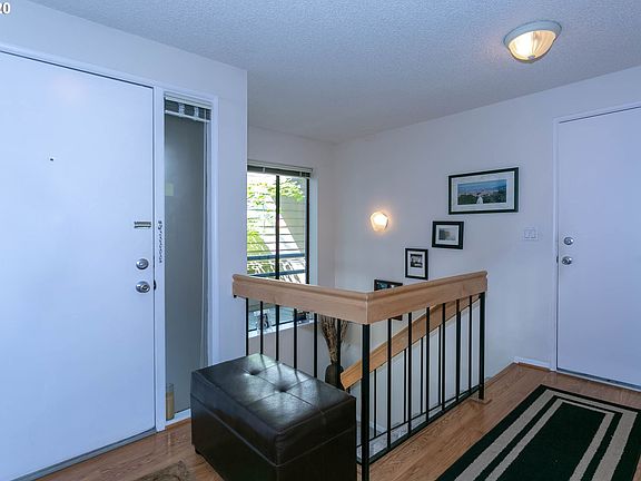 Light & Bright townhouse style end unit in quiet private wooded setting in Lake Oswego .Open floor plan, high ceilings, walls of windows, wood-burning fireplace, one and half bathrooms, large deck w/beautiful wooded view off updated kitchen/dining/great room space. One car attached garage, plus parking space. Additional parking on Cervantes. Includes Mountain Park amenities; pool, rec center, walking trails, easy access to I-5 & Hwy 217.