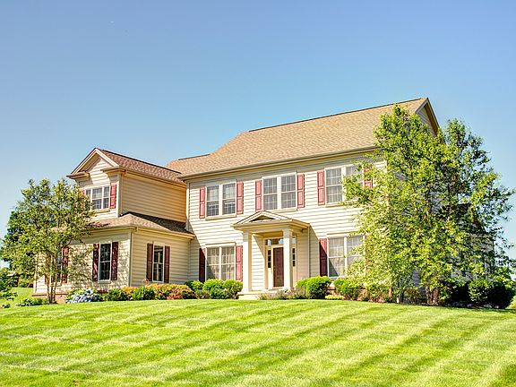 Former model home. Magnificent Deluca built colonial in the desirable neighborhood of Ashland Meadows. Incredibly stylish and tasteful d~cor throughout the interior and situated on over an acre of manicured, open grounds. The custom kitchen boasts maple cabinets, granite countertops, angled center island with pendant lights, subway tile backsplash, dual oven, 5-burner gas cooktop, and pantry. Gleaming hardwood floors extend from the kitchen into a stunning breakfast room with abundant windows with an oversized Palladian window as the focal point along with a vaulted ceiling and access to a charming rear porch. The kitchen also opens to a 2-story family room with gas fireplace. The dining room, living room, and foyer are beautifully appointed with crown molding. The 2-story foyer offers hardwood flooring and an impressive turned staircase. A spacious first floor bedroom with a bay window and deep walk in closet can also be used as an office or study. The powder room, laundry room, and rear staircase complete the main level. Upstairs, the master bedroom features a tray ceiling, sitting room, and massive walk in closet with dormer windows. The luxurious master bath offers ceramic tile floor, seamless glass shower with tile surround, corner jetted tub, dual vanity with granite countertops, linen closet and a separate water closet. Another bedroom suite offers a large walk in closet and private full bath. Two other bedrooms, a pretty hall bath, and a balcony overlooking the family room complete the 2nd floor. The 3-car garage and full walk-out basement provide plenty of extra space and storage. Great natural light throughout. Meticulously landscaped and inviting. Low maintenance and worry-free!