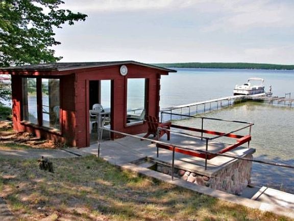 Take a 360 Virtual Tour http://rtvpix.com/RE-8981-S08YHK-01 Magnificent lake views and 98 feet of shared frontage with boat docking. Cottage on the lower east side with finished walk-out basement. Approx annual taxes for Unit 5 = $2850 (non-homestead). Association dues $125 per quarter.