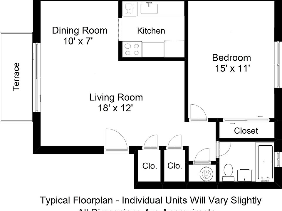 Updated 1 Bedroom Apartment w/ a TERRACE. $1575 per month plus utilities. Available for MAY 15 ( ) move-in. No Broker Fee. This is a SMOKE FREE apartment. Smoking is prohibited inside the apartment and on the grounds. Sorry, but NO PETS allowed. Call show contact info Mon - Fri 9:00 AM - 4:00 PM for information and appointments to view. Please speak slowly and clearly and repeat your number twice if leaving a message so we can get back to you. SEE SAMPLE FLOOR PLAN Very convenient to mass transit and major highways. 1 block from NJ Transit buses -- 30 minutes to midtown during rush hour. Easy access to Rts. 46, 80, and 95 (NJ Turnpike). Located next to town pool; near Overpeck County Park. 650 Sq Ft (approx.) not including terrace. Updated kitchen includes hardwood cabinets, granite counters, and current appliances (stove, dishwasher and refrigerator). Freshly painted with refinished parquet wood floors throughout. Tenant pays all utilities (all electric)--budget $150 - $175 average monthly for electric; cold water provided by landlord. A/C's in living room and bedroom. Ample closet space includes 2 storage closets, linen closet, and large bedroom closet. Laundry Room on-site. Plenty of on and off street parking--garages available for additional fee. Bedroom is approx. 11' x 15 large enough for a queen size bed plus additional furniture (dresser, nightstands, etc...) and has a 6' reach-in closet. "L" shaped Living Room and Dining Room--approx. 12' x 18' and 10' x 7' respectively. 5 block walk to Main Street for restaurants, shops and grocery store. 10-plex movie theater is a 2-minute drive away. Minutes from best shopping centers in the area! Convenient to: Hackensack, Teaneck, Englewood, Englewood Cliffs, Bogota, Fort Lee, Paramus, Little Ferry, Teterboro, Secaucus, Carlstadt, Fairview, North Bergen, West New York, etc... One year lease required--no short term tenancies. Applicants must meet income and credit history requirements. (there is an application / credit report fee of $100 per adult.) All showings by appointment only