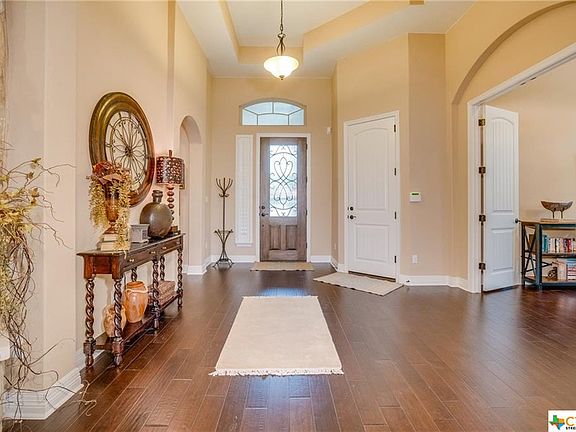 Beautiful home w/dynamic views of the San Gabriel River Valley! Desirable Ryder plan, open & spacious perfect for entertaining, hardwood floors throughout 1st floor. Kitchen boasts rich cabinetry with oversized cir island and GE Profile appl. Elegant master and m/bath with upgraded plumbing fixtures, spacious master closet with custom Elfa Shelving. 4 bed + office, large game room, 3 car garage, covered patio, int and ext fireplaces, with amazing private hill country views.