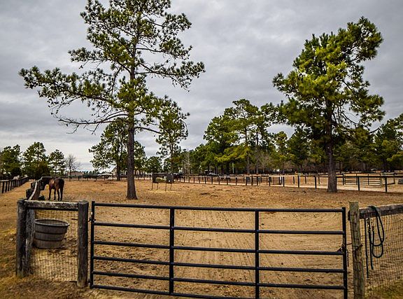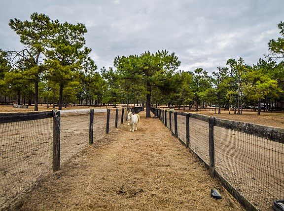 Enter driveway through a gated entrance between fenced horse paddocks that lead you to a ten (10) stall center aisle insulated barn offering a nice wide center aisle, generous 12 X 12 stalls with sliding stall front doors and back Dutch doors. Hot/Cold indoor wash stall, spacious feed/storage room with utility sink and half bath, and a tack room. This efficient working horse farm also has an equipment pole barn with electric, enclosed on three sides at one end and covered bays ideal for round bale storage and or to park farm tractor & implements. At about the center of the property is a Fleetwood single wide with fenced dog yard and at the back of the property is the kennel building. The kennel building could be converted to other uses as it has electric, water & a slab floor & is already piped for a bathroom in current feed room. Kennels may be removed by seller if desired. Two fenced kennel yards on either side of the kennel and additional wooded acreage is still part of property.