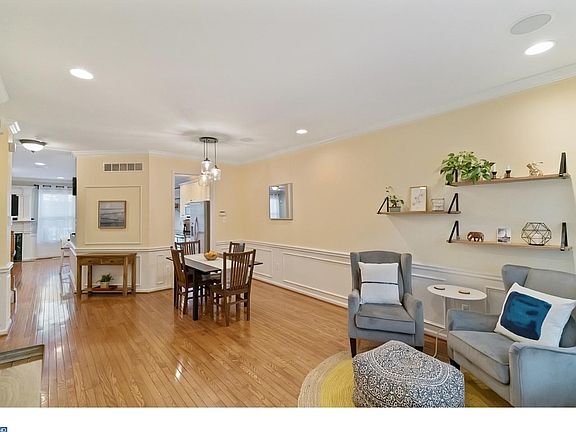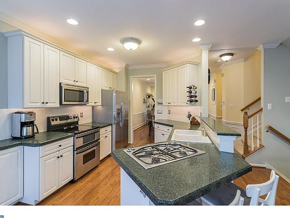 This stunning home located in Chalfont borough's "Chalfont Greene" is sure to leave you ready to make your move! Desirable Central Bucks School District, a short walk to train station and moments from all the culture and amenities of Bucks County positions this home right in the middle of where everyone wants to be. The moment you step onto the covered front porch, open the front door and experience the flowing hardwood floors, elegant wainscot and crown molding, modern paint scheme and unobstructed open floor plan you'll be want to call this your new home! A seamlessly conjoined living and dining room leads into an open style galley kitchen boasting stainless steel appliances, double oven, new dishwasher, a new reverse osmosis water filtration system, wrap around counter w/ breakfast bar & built in gas range. Kitchen also includes a sunny breakfast room with access to a brand new 18'x17' composite deck through sliding glass doors. Deck includes a piped in gas grill which will stay with the home. Beyond the breakfast bar you'll be overlooking an expansive family room with a classy gas fireplace set in a stylish custom trimmed hearth. Gleaming hardwood floors throughout the entire first level pulls everything into a fluid and unified experience. A fashionable powder room is located on the 1st floor as well as access to the attached garage w/ storage racks in place and E-opener. Heading upstairs you'll find 3 spacious bedrooms, 2 full baths and a laundry room. Master suite beams with dignified offerings including tray ceiling with recessed lighting, an opulent walk in closet and modern full bathroom with tiled stall shower and double bowl vanity. Second and Third bedroom are both generously sized, bright and cheery. Hall bathroom enjoys a tile shower, granite top vanity and recessed LED lighting. Convenient 2nd floor laundry room with tile floor and utility sink also includes new Samsung front loader Washer & Dryer- both included with the home. Take a trip to the lower level and be impressed once again! Fully finished basement offers approx. 400 sq/ft of space comprising a bar, family room and office with barn style doors. Modern paint scheme and wood gain flooring as well as recessed LED lights creates a great spot for entertaining, working out, or working from home. Plenty of extra storage in the utility room as well. Home offers Aprilaire whole house humidifier, city back up sump pump, surround sound system, natural gas utilities and so much more!