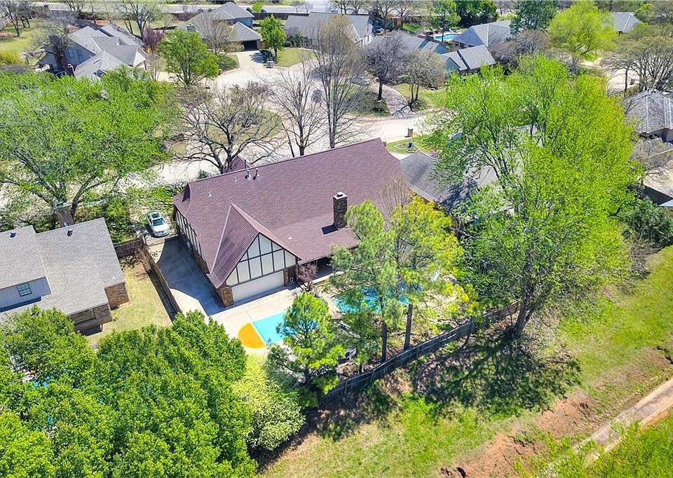 HUGE PRICE REDUCTION! Spacious home in one of Edmond's favorite neighborhoods - Huntwick. SWIMMING POOL with SLIDE & WATERFALL. Hot tub on the covered back patio. Spacious almost 1/3 ACRE lot backing to the GREENBELT. Rear-entry garage. Basketball court area with basketball goal. Spacious living has vaulted CATHEDRAL ceiling w/STONE fireplace. Lots of WOOD floors throughout. True study loaded with quality. Formal dining. FLAGSTONE flooring in entry, hall and kitchen. Kitchen has GRANITE. Master suite has updated shower, whirlpool tub, double vanities and double walk-in closets. Upstairs features 3 bedrooms, 2 updated bathrooms, a THEATER room (theater equipment and chairs stay) and a bonus/gameroom. Lots of flexibility with this floor plan. Great location close to I-35, restaurants, shopping, medical care. Edmond schools.