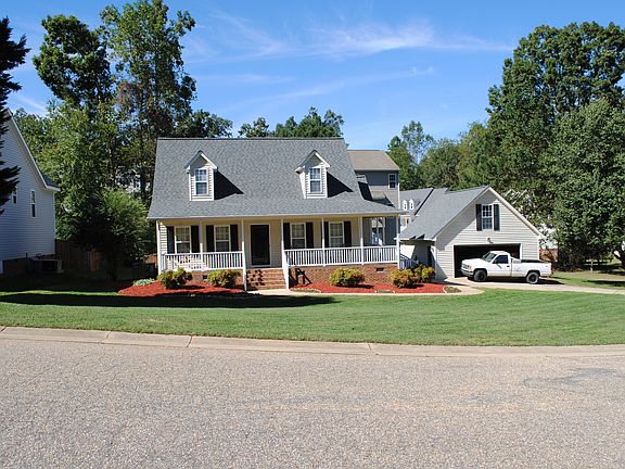 A wonderfully cozy cape code, nestled in the back of highly sought after Valley Field subdivision in Holly Springs, NC. Home features 3 bedrooms and 2.5 baths, including a master on the main. Master bedroom includes walk-in closet, and his and hers vanity sinks. The gas log fireplace in the family room will keep you cozy in the winter time. The downstairs has pre-finished real hardwood floors (2010) with tile in all bathrooms (2009) and the kitchen (2008) and carpeted upstairs. Home boasts tons of easily accessible attic storage space in both the house (each dormer has floor level storage that runs the length of the front of the house) and the garage (floor level storage that runs the length of the garage accessible from the second floor). Not included in the square footage of the home is a 252 square foot heated/cooled bonus room above the detached garage (garage square footage includes 500 downstairs and 252 upstairs not counting ample storage space) perfect for a home office, studio, or game room. New 50 year shingle roof installed in 2013. New water heater installed in 2012. New, custom built, 350 square foot, 2 tiered deck built in 2015. This home is also perfect for the gardening enthusiast and includes 4 raised garden beds, and a 3 year old, producing peach tree. Fenced backyard is perfect for children or pets to play in, or sit in the porch swing on the wrap around front porch and enjoy a quiet, Sunday afternoon. The exterior of the home includes beautiful, low maintenance landscaping. Home is located within 5-10 minutes of plenty of shopping, dining, and entertainment. The local library and cultural center hosts plenty of events and is only a 10 minute bike ride or 20 minute walk (you could also drive, but why would you want to do that?), and of course, there is the local farmer's market that hosts up to 2 dozen vendors every Saturday, May-October. Room Dimensions: - Master: 13.5' x 13.5' - Room 1 (upstairs): 11' x 11' (not counting the 3' wide dormer) - Room 2 (upstairs): 11' x 13' (not counting the 3' wide dormer) - Family Room: 13.5' x 16' - Bonus Room Above Garage: 19' x 13.5' floor space (with vaulted ceiling)