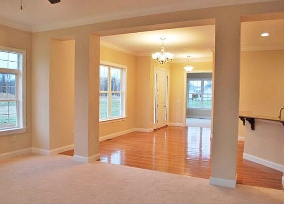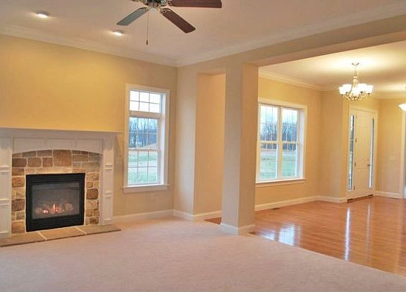 New, one-story triplex carriage home by Landmark Homes features: * 1,711 sq. ft. * 1 bedroom, 2 baths, study * Two-car garage * Wide trim detail throughout home, wood crown molding, and upgraded paint selections * Hardwood flooring in Foyer and Dining Room * Master Bedroom is quietly situated at the back of the home, and includes a walk-in closet and a private bath with a tile shower and Dura Ceramic flooring * Cozy gas fireplace in Family Room, with base cabinets and bookshelves, and access to the vinyl screened-in porch * Sleek granite island top and countertops with tile backsplash in Kitchen; Dura Ceramic flooring extends through to Breakfast Area * Daylight basement