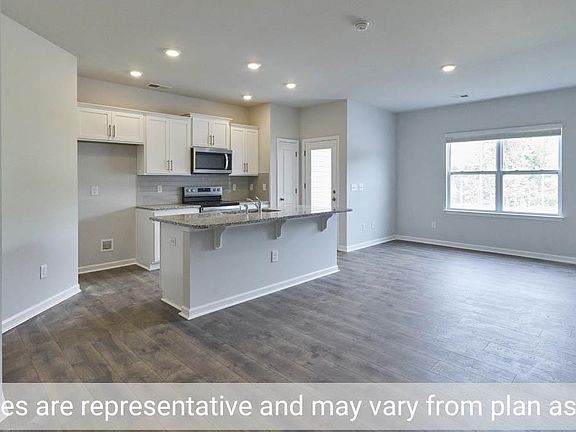 The Townes at Galvin's Ridge, located in the booming Sanford, NC is conveniently located off of Hwy 1 within 10 minutes of major area employers in Central Carolina Enterprise Park, such as Pfizer, Caterpillar, and Astella, 35 minutes from Research Triangle Park + 45 minutes to Fort Bragg. This thoughtfully designed master-planned community will feature a wide array of townhome designs and gathering spaces throughout the community to stay connected with friends and family. Planned amenities included pool, clubhouse, outdoor courts, miles of walking trails, dog park etc. This open-floor plan Townhome boasts a large island with gracious family room. Upstairs the primary suite features a light-filled vaulted ceiling!
